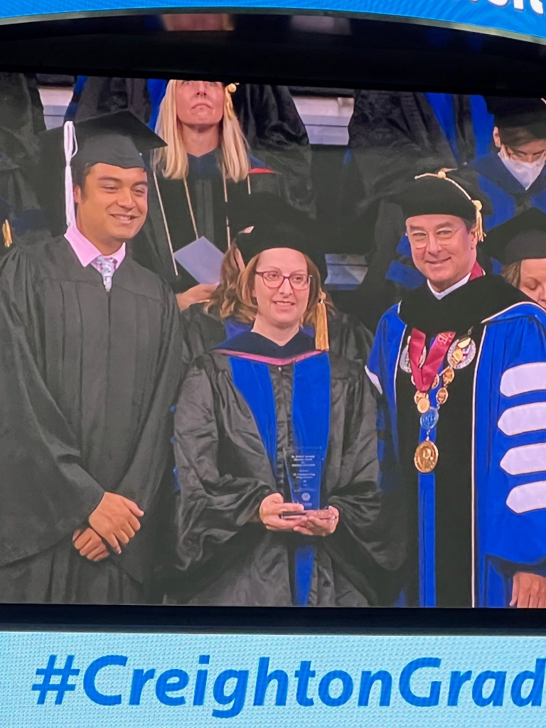 Wowsa, never saw that one coming! But the students of Creighton, via the Creighton Student Union actually left Dr. King speechless by awarding her the 2022 Robert F. Kennedy Memorial Award for Teaching Achievement. This once-in-your-life at Creighton award is conferred at commencement (nerves anyone?) as recognition of teaching that is above and beyond. Dr. King was cited for innovation and rigor. Not words that students tend to appreciate in the moment, but then again college isn’t about the moment but preparation for all that is ahead! More here.