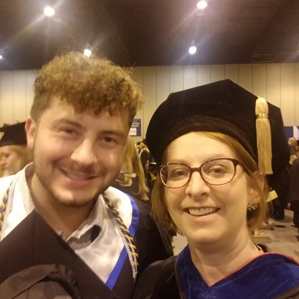 Pictures explained: Surprised the University President requesting an on-stage selfie (first to do so… probably not allowed again….), drawing was one of many examples where interlab competition lead to greatness, graduation selfie… normal, graduation selfie… reversing our Goldwater poses (then: me, screaming; him, in shock; now me:in shock; him: happy!)